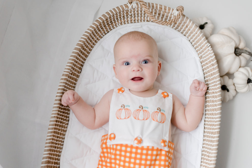 The Pumpkin Patch Jon Jon is part of our Pumpkin Patch Collection. Complete your sibling set with our Pumpkin Patch Dress, Pumpkin Patch Polo & Short Set or our Pumpkin Patch Bubble.