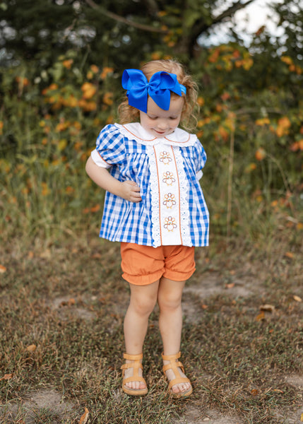 Thankful Navy Gingham A-Line Dress and Bloomer Set with Turkey Embroidery